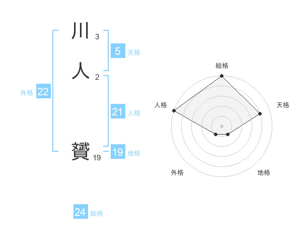 川人 贇さんの外格は22画の1点!