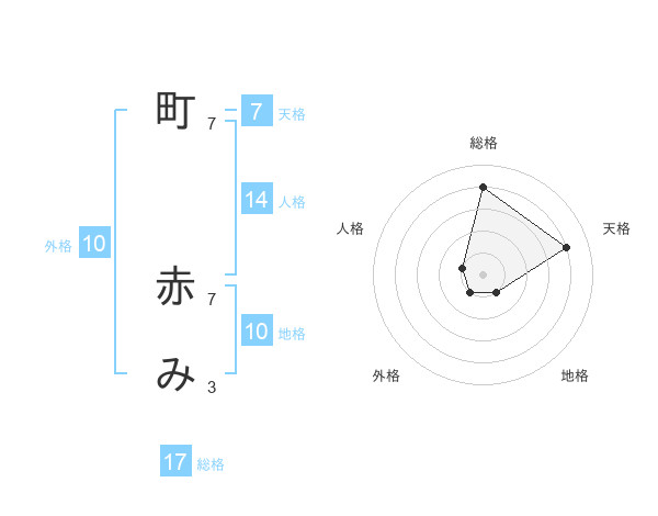町 赤みさんの総格は17画の4点!