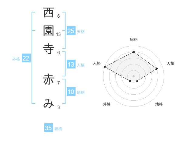西園寺 赤みさんの総格は35画の4点!