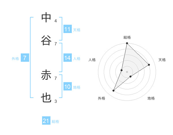 中谷 赤也さんの総格は21画の5点!