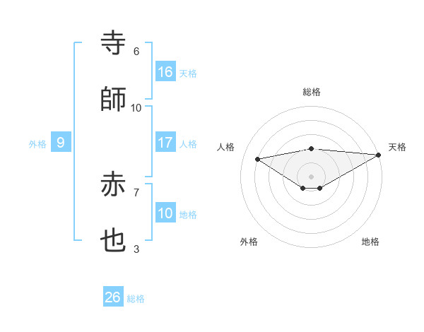 寺師 赤也さんの総格は26画の2点!