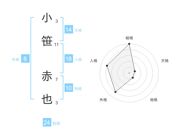 小笹 赤也さんの総格は24画の5点!