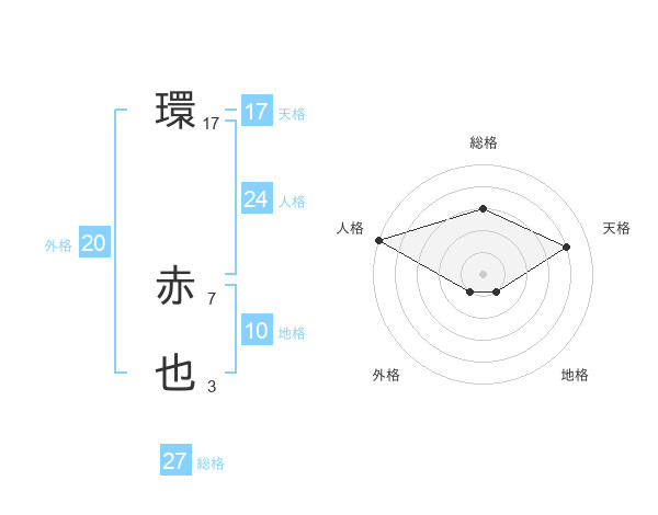 環 赤也さんの天格は17画の4点!