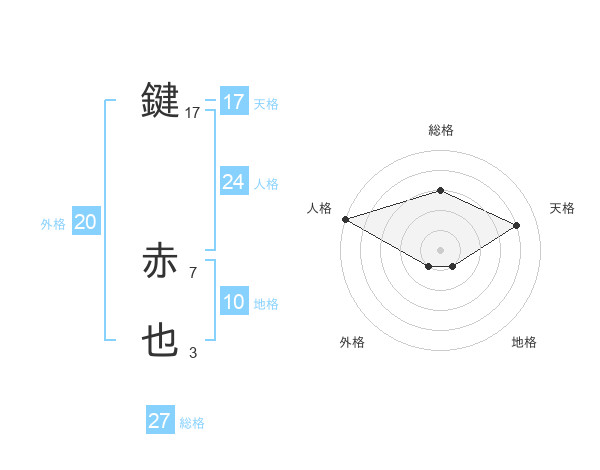 鍵 赤也さんを姓名の画数から五運を鑑定