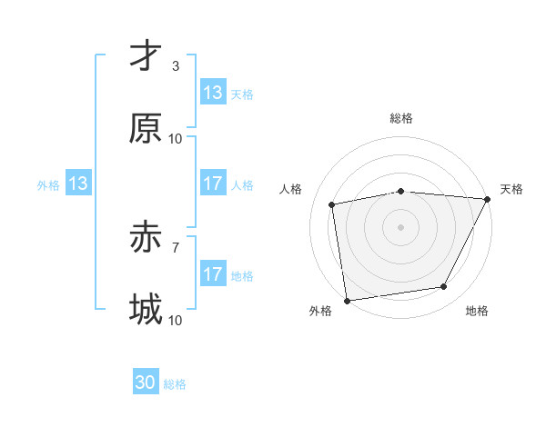 才原 赤城さんの外格は13画の5点!