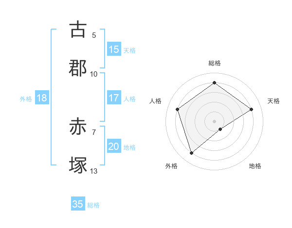 古郡 赤塚さんを姓名の画数から五運を鑑定
