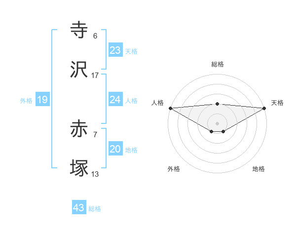 寺沢 赤塚さんの天格は23画の5点!