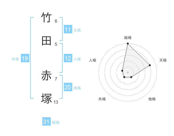 竹田 赤塚さんを姓名の画数から五運を鑑定