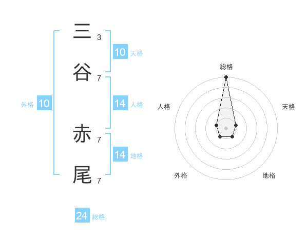三谷 赤尾さんの総格は24画の5点!