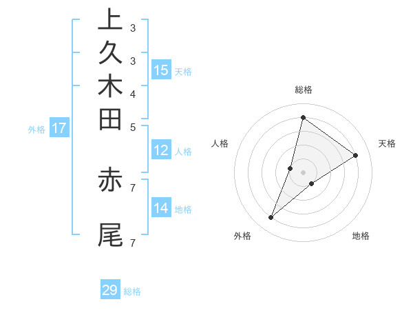 上久木田 赤尾さんを姓名の画数から五運を鑑定