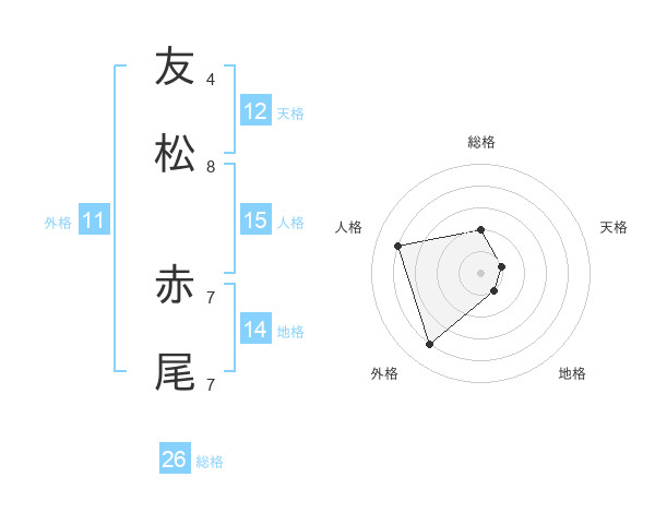 友松 赤尾さんの総格は26画の2点