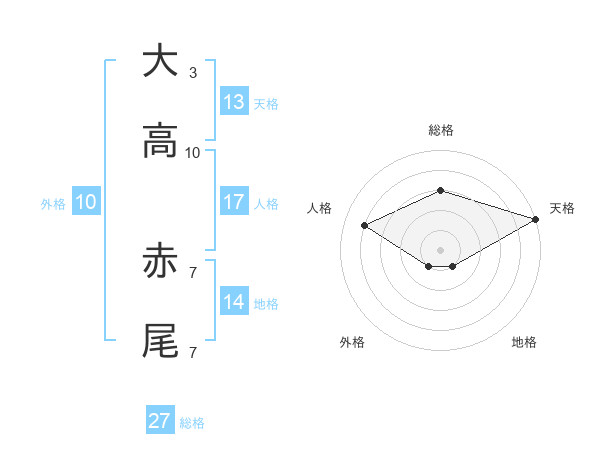 大高 赤尾さんの総格は27画の3点!
