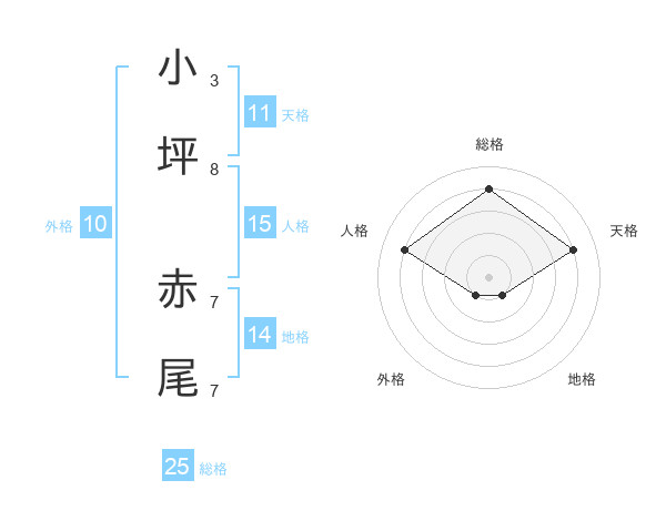 小坪 赤尾さんを姓名の画数から五運を鑑定