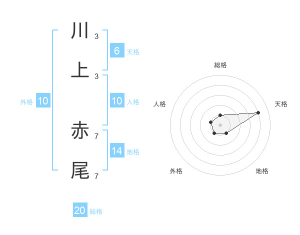 川上 赤尾さんの天格は6画の4点!