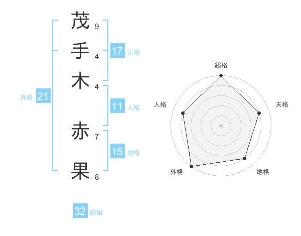 茂手木 赤果さんを姓名の画数から五運を鑑定