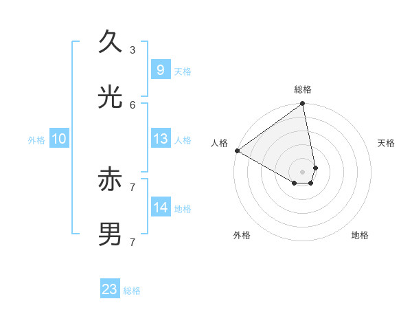久光 赤男さんの総格は23画の5点!