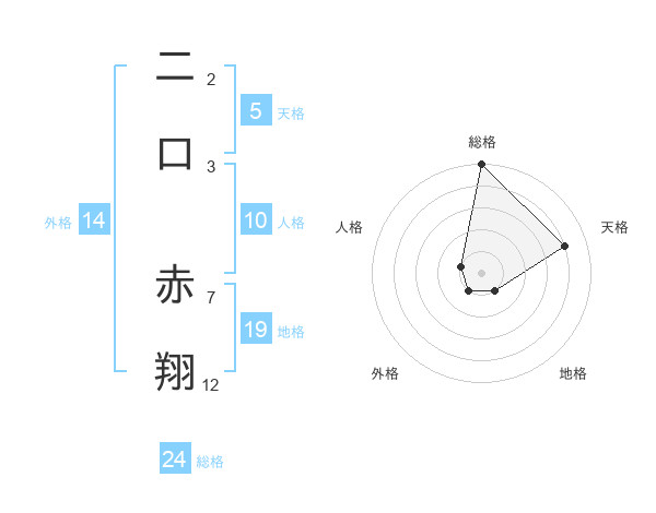 二口 赤翔さんの天格は5画の4点!