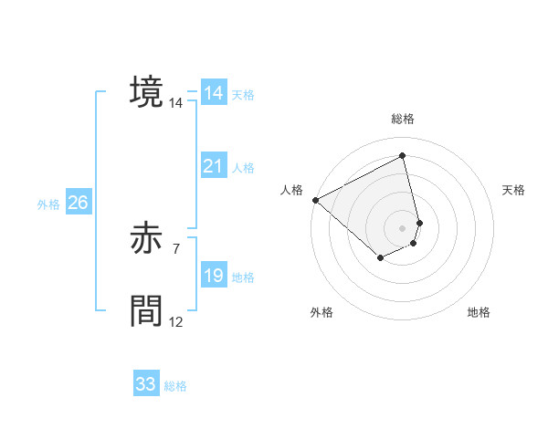 境 赤間さんの総格は33画の4点!