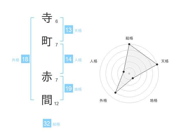 寺町 赤間さんの総格は32画の5点!