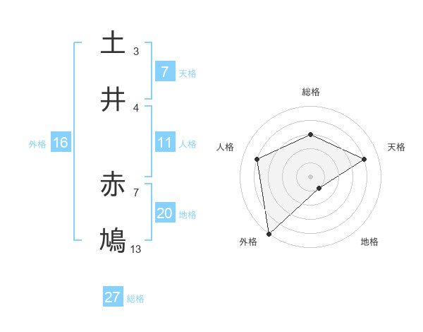 土井 赤鳩さんを姓名の画数から五運を鑑定