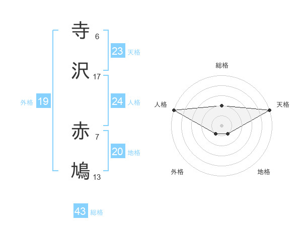 寺沢 赤鳩さんの天格は23画の5点!