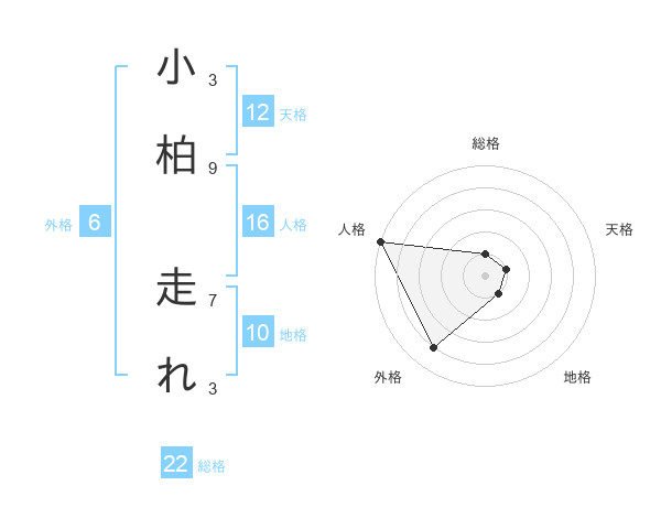小柏 走れさんの天格は12画の1点!
