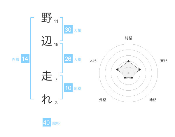 野辺 走れさんの総格は40画の2点!