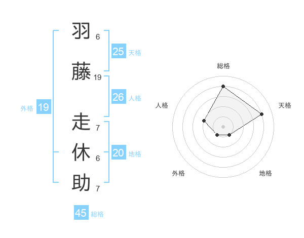 羽藤 走休助さんの総格は45画の4点!