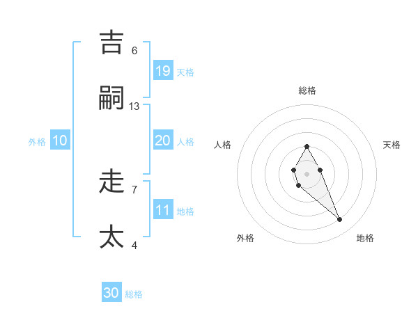 吉嗣 走太さんの総格は30画の2点!