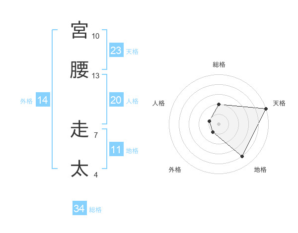 宮腰 走太さんを姓名の画数から五運を鑑定