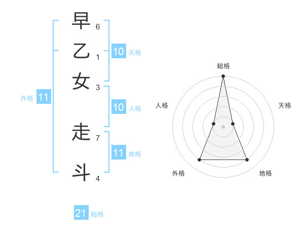 早乙女 走斗さんを姓名の画数から五運を鑑定