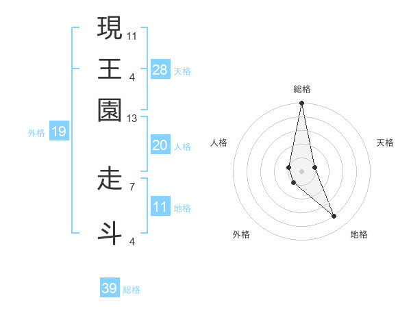現王園 走斗さんを姓名の画数から五運を鑑定