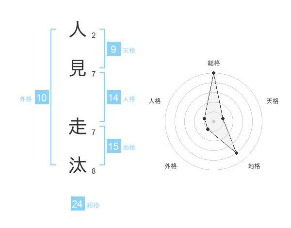 人見 走汰さんの総格は24画の5点!