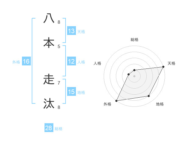 八本 走汰さんの天格は13画の5点!