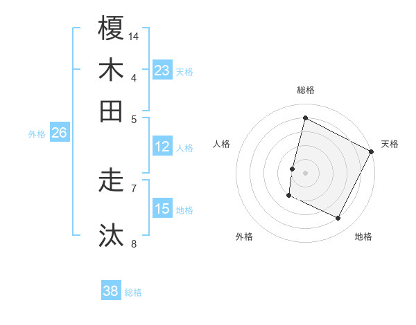 榎木田 走汰さんの総格は38画の4点!
