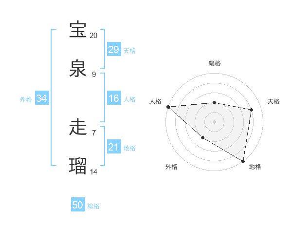 宝泉 走瑠さんを姓名の画数から五運を鑑定