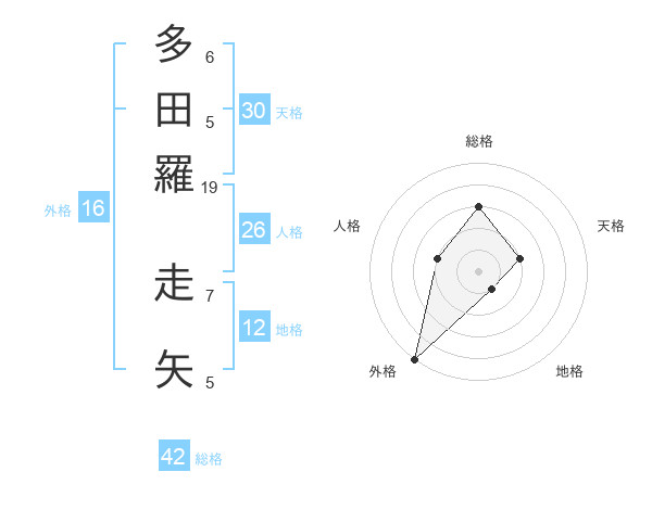 多田羅 走矢さんを姓名の画数から五運を鑑定