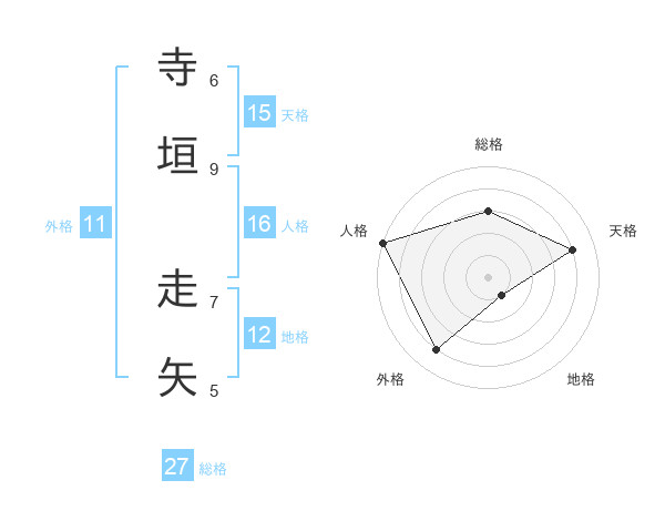 寺垣 走矢さんを姓名の画数から五運を鑑定