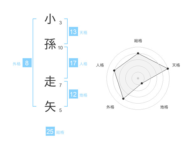 小孫 走矢さんを姓名の画数から五運を鑑定