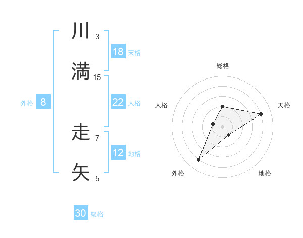 川満 走矢さんの総格は30画の2点!