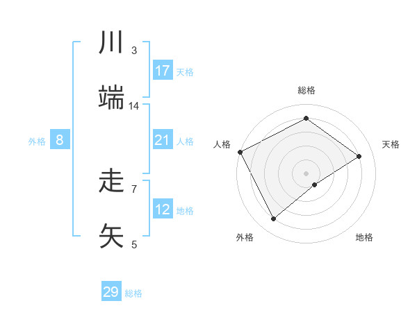 川端 走矢さんの天格は17画の4点!