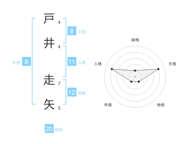 戸井 走矢さんを姓名の画数から五運を鑑定