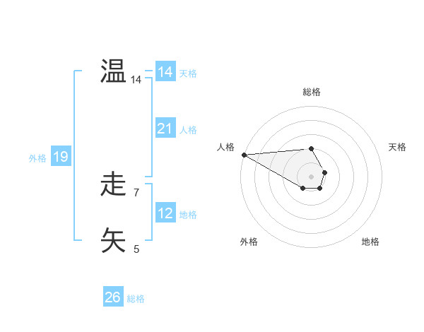 温 走矢さんの外格は19画の1点!