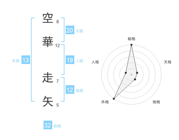 空華 走矢さんの外格は13画の5点!