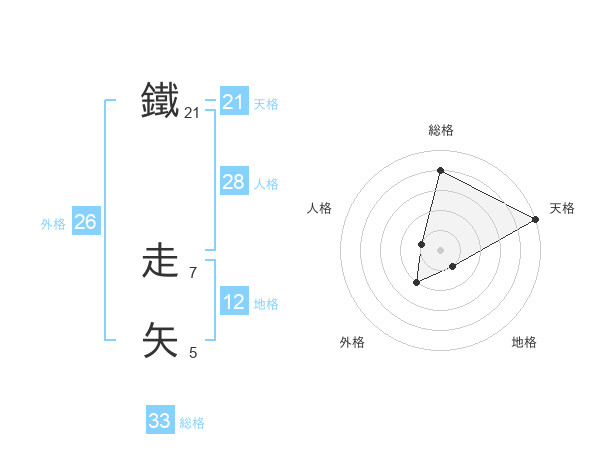鐵 走矢さんを姓名の画数から五運を鑑定