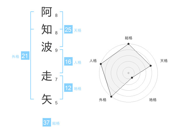 阿知波 走矢さんを姓名の画数から五運を鑑定