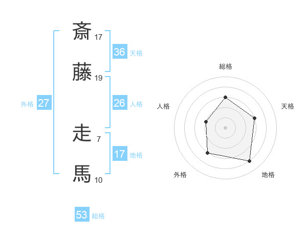 斎藤 走馬さんを姓名の画数から五運を鑑定