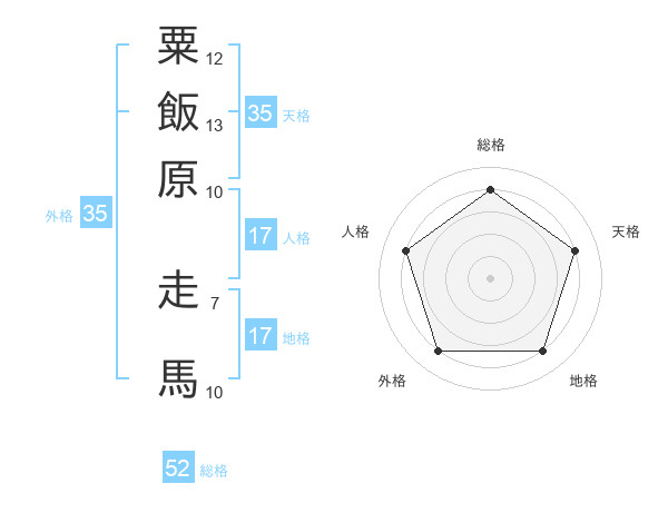 粟飯原 走馬さんを姓名の画数から五運を鑑定