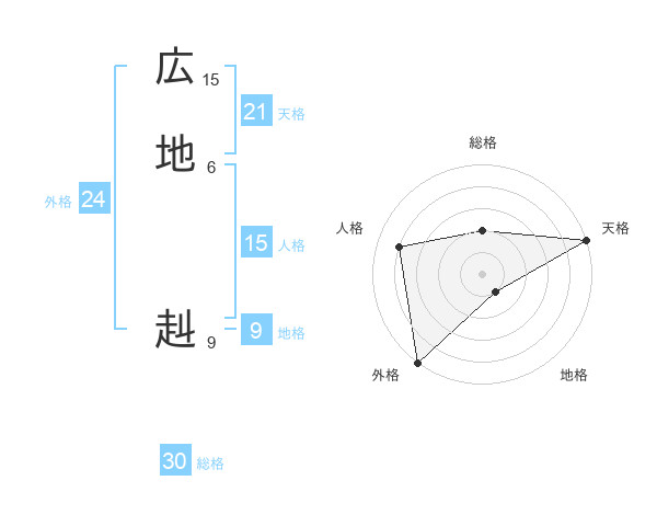 広地 赳さんの総格は30画の2点!