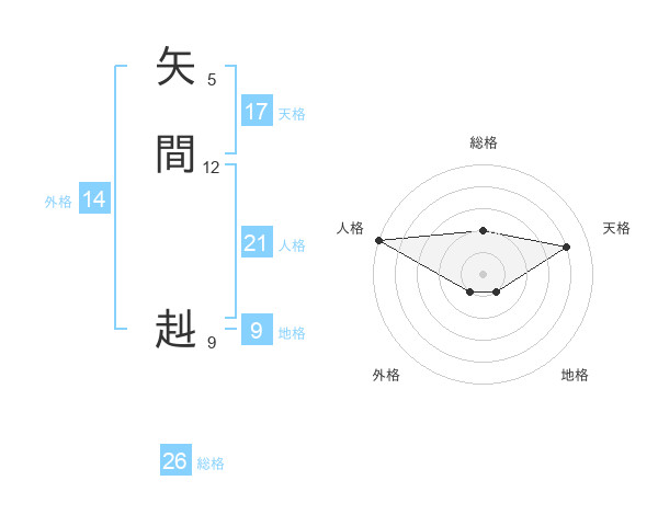 矢間 赳さんの天格は17画の4点!